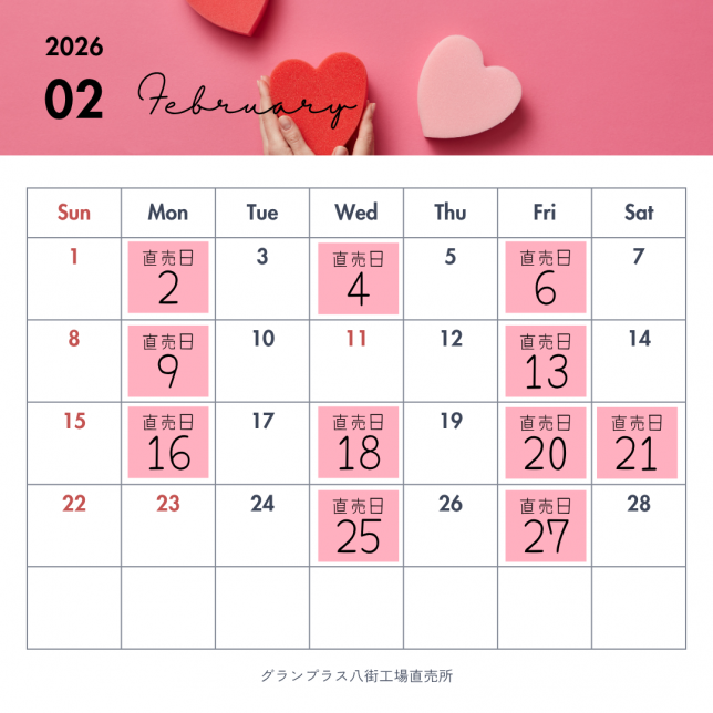 2026年2月の工場直売会の日程をご案内申し上げます。