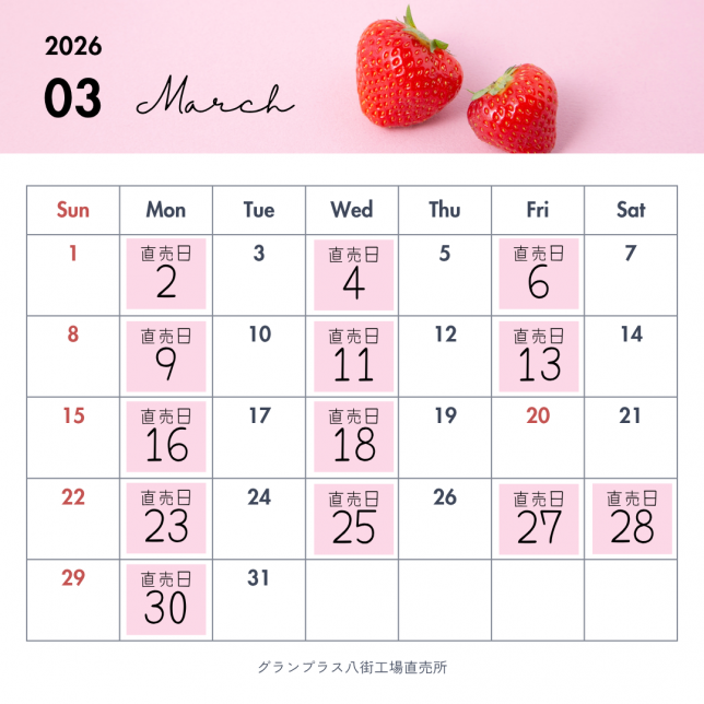 2026年3月の工場直売会の日程をご案内申し上げます。